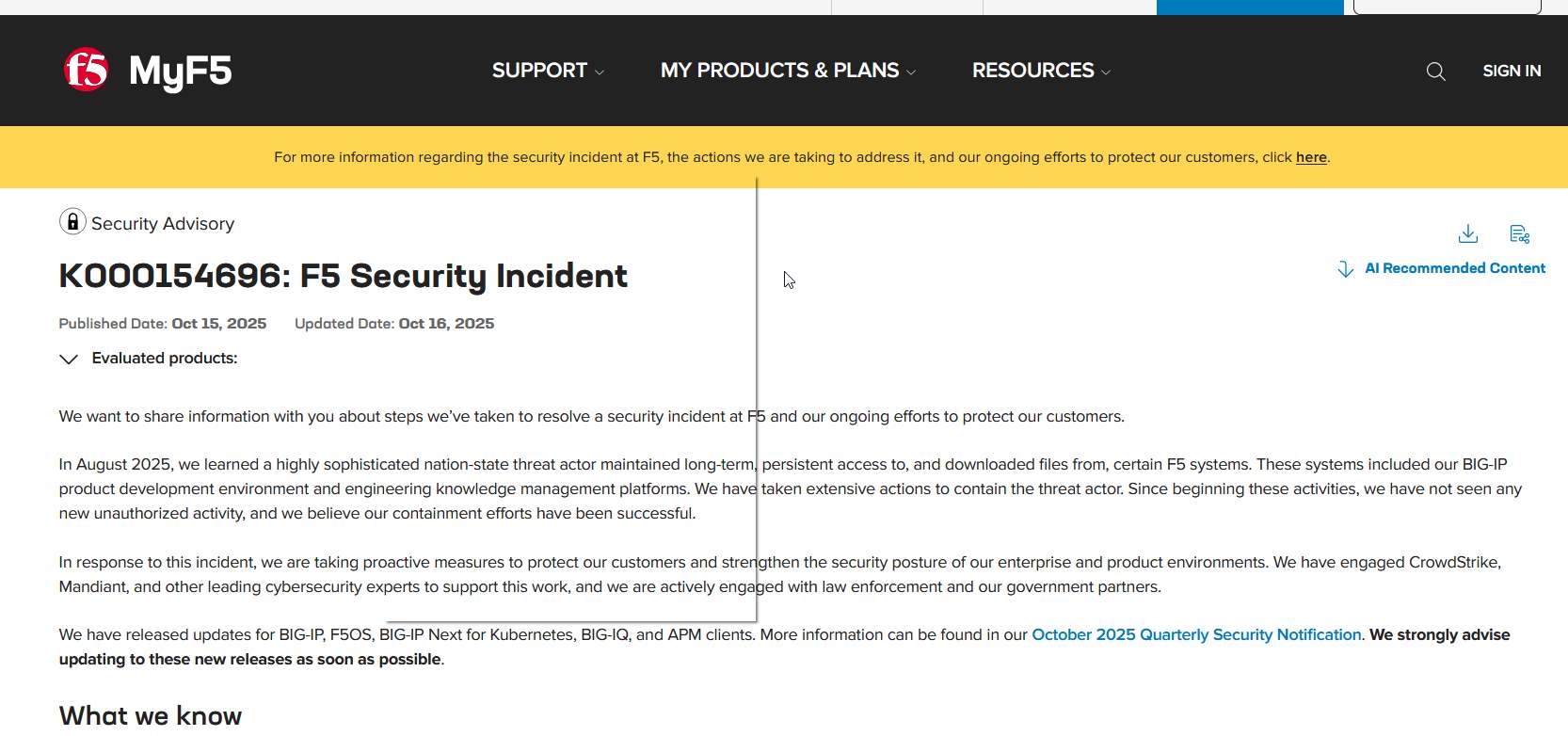 After identifying the intrusion, F5 immediately engaged top cybersecurity firms: